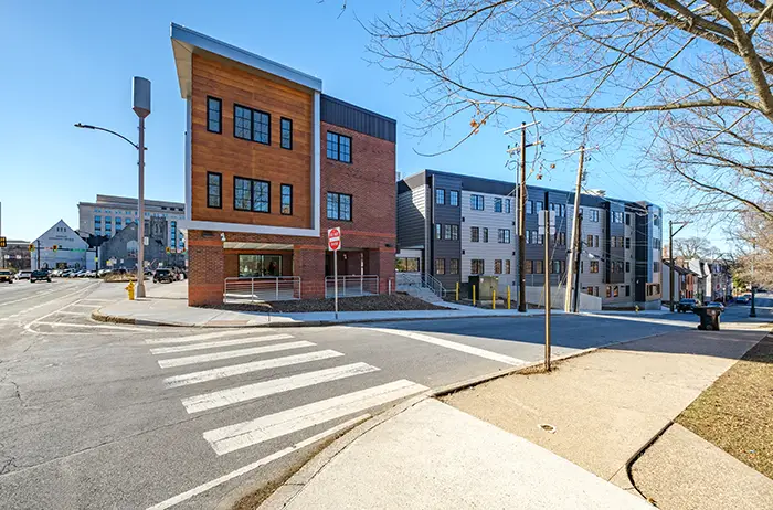 New construction of a 45,000 SF, 49-unit community for seniors 62 years and older, situated at 6th and Herr Streets, two blocks from the Capitol Building in the city of Harrisburg. Using PHFA low-income housing tax credits, affordable housing presented a perfect opportunity to meet economic needs through sustainability and functionality on a brownfield site. Prefabricated panelization solutions were crafted with precision to benefit the build on the tight corner, urban landscape. A multi-purpose community room will accommodate programs for supportive services, resident activities, and the community. Amenities also include on-site management offices, maintenance areas, and laundry facilities.