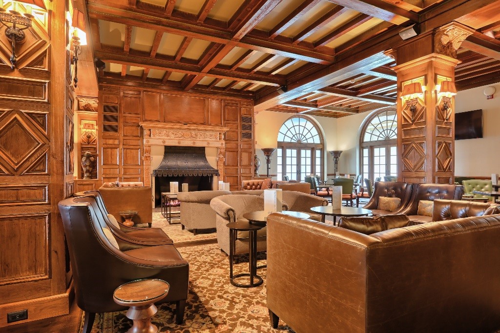 The project consists of the renovation and restoration of the bar and lounge areas. This included new wood flooring, carpet, mosaic tile, LED lighting, and restoration of the fireplace and historic mural In keeping with the Spanish motif of the Hotel. The mural was painted by Robert von Ezdorf in 1934 who was also responsible for all the Hotel’s interior design. The mural creates an optical illusion of the tile path always being directed toward the viewer, no matter where the viewer stands.