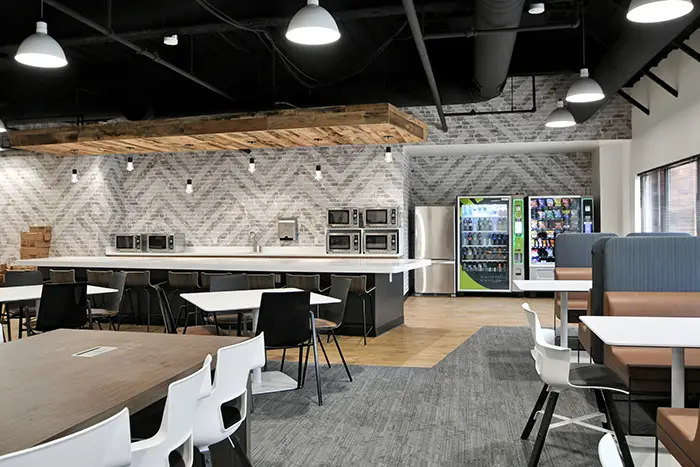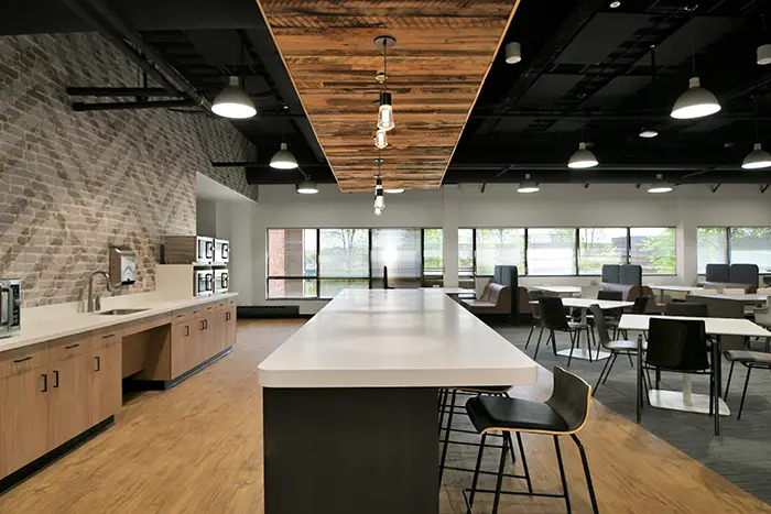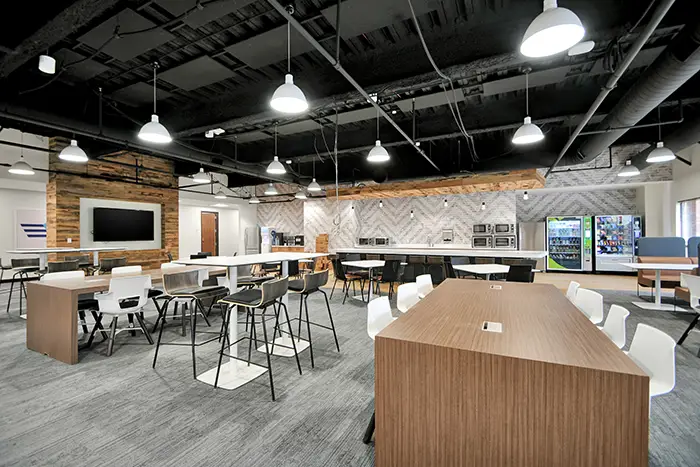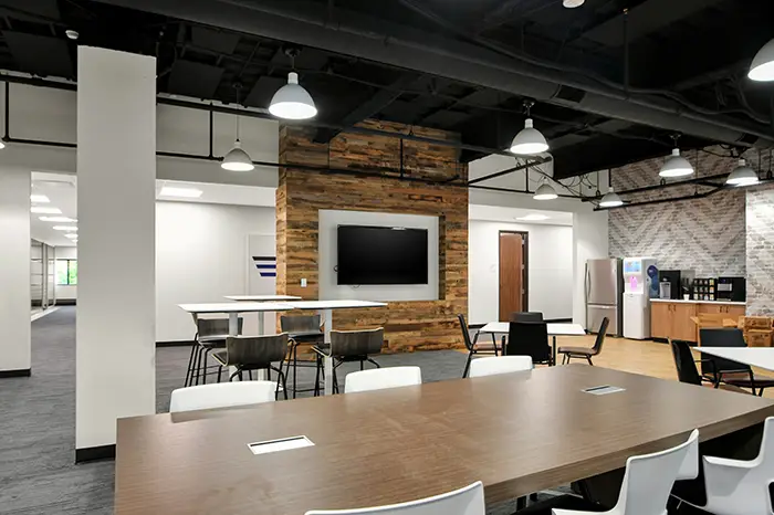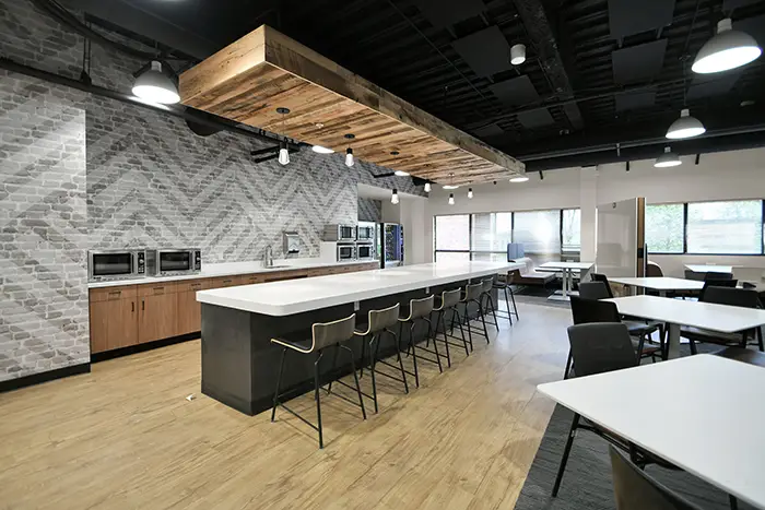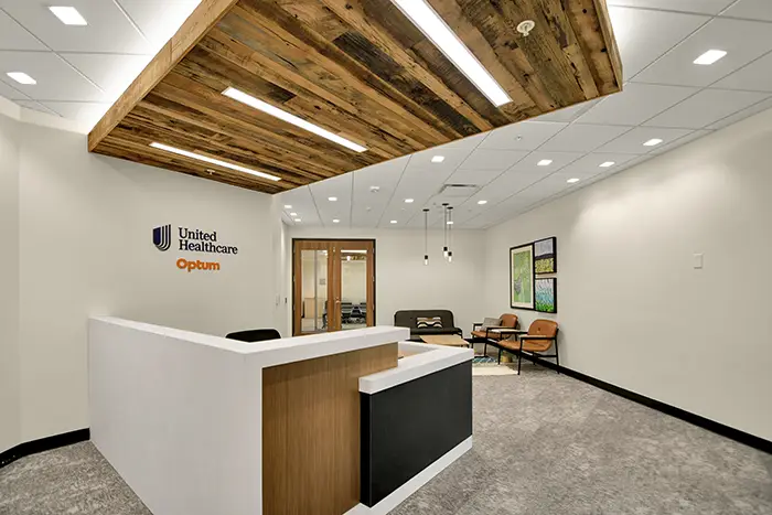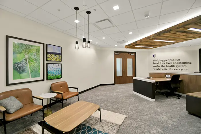 A 48,000 SF healthcare space renovation with demolition, and upgrades with new flooring, ceilings, and energy-efficient lighting, plus mechanical, electrical, and plumbing work. Special features include custom offices with uniquely designed frameless sliding doors for flush spatial transitions.